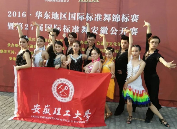 4月30日,2016·华东地区国际标准舞锦标赛暨第27届国际标准舞安徽公开赛在安徽大学体育馆隆重开幕,共有来自北京、江苏、安徽等省21个城市64支代表队3000多人报名参赛,我校拉丁舞队代表队不畏强手,在众多队伍中脱颖而出,在拉丁舞大中专院校组的比赛中共有四对选手闯进决赛,分获第一名、第二名、第四名和第五名的好成绩;在拉丁舞业余组的比赛中,我校三对选手包揽了该项目的前三名;在拉丁舞巾帼女单六人组比赛中,取得了团体第二名的优异成绩。