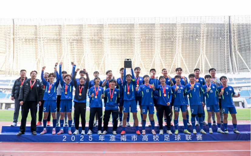 11月29日,2025年淮南市高校足球联赛在淮南奥林匹克中心落下帷幕。经过两个多月的激烈角逐,校足球队凭借稳定发挥一路过关斩将,以全胜战绩斩获冠军。
