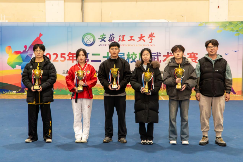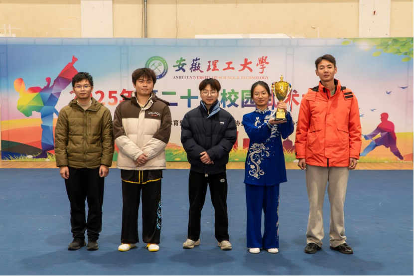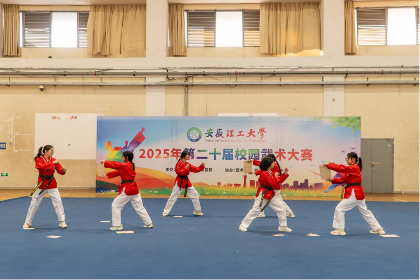 为推动武术进校园,丰富校园体育文化,传承和弘扬中华优秀传统文化,培养学生集体荣誉感,根据2025年安徽理工大学竞赛计划要求,由体育部主办,校武术协会、明德至善搏击协会协办的安徽理工大学第二十届校园武术大赛于12月6日下午在自强体育馆开赛,共有来自9个学院53名运动员参加了拳术、器械、散打、跆拳道、武术集体展示等五个项目的比赛。